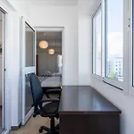 A flat-screen TV with satellite channels, along with an iron and ironing board, and an air conditioner, are provided in a balcony and a seating area for guests' comfort and convenience. This apartment is also furnished with a sofa and a work desk. The property is equipped with a bathroom that features hairdryers and towels. Additionally, you'll find a separate toilet, a bath, and a shower.